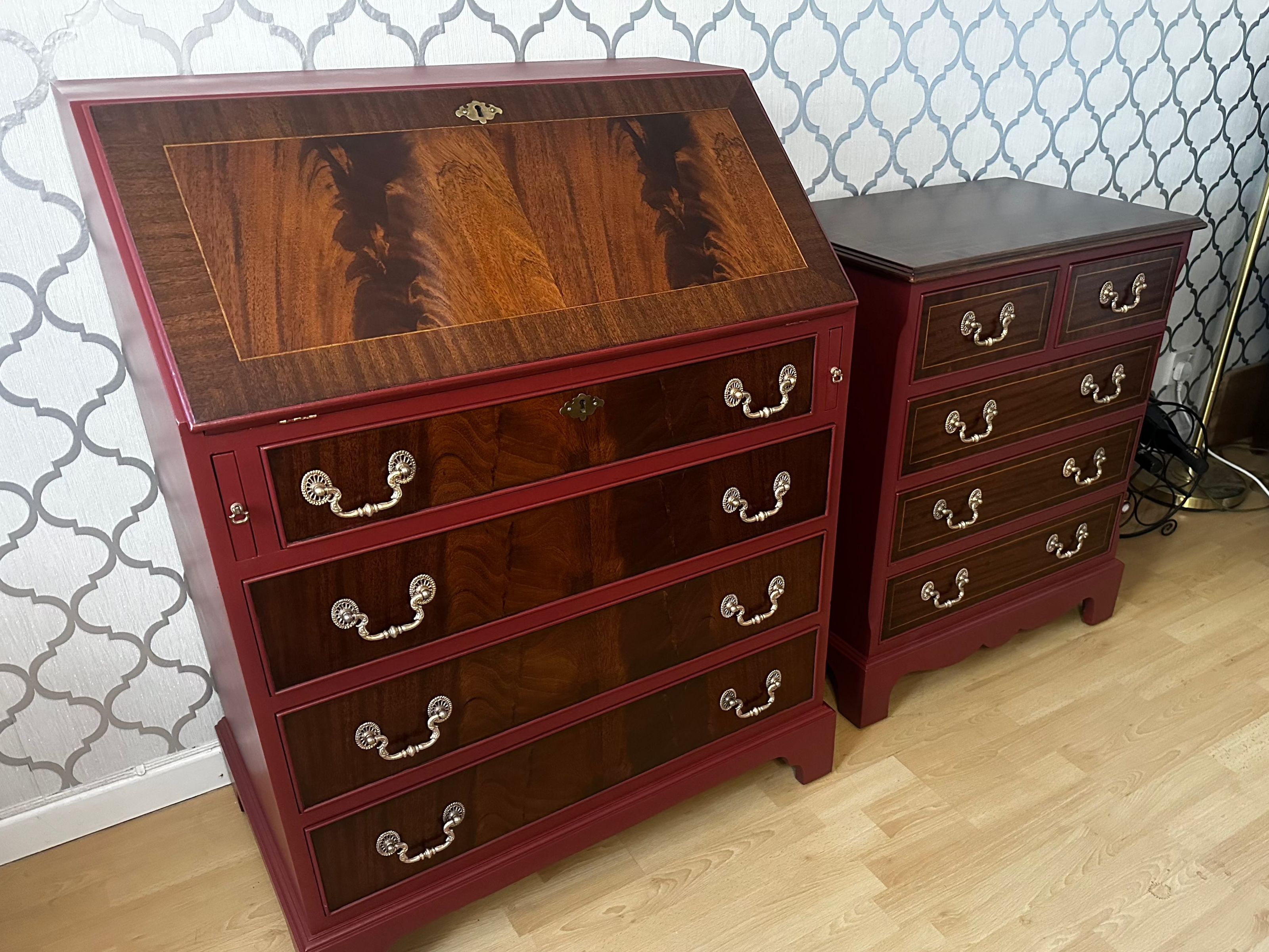 2 Piece Makeover - Restored mahogany with Teak oil & cricket leather red paint